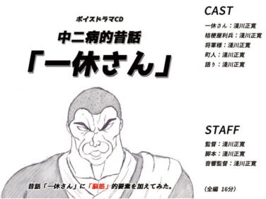 ASMR 中二病的昔話「一休さん」 中二病的昔話「一休さん」作品ページへ作品情報サークルま〜坊のまったりたいむシリーズ名中二病的昔話シリーズシナリオ未入力イラスト未入力声優未入力販売日2021年08月29日年齢指定全年齢作品形式ボイス・ASMRファイル形式MP3ファイル容量2... 2025.10.17 ASMR